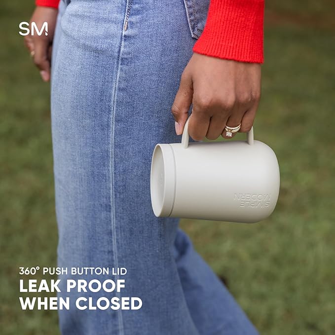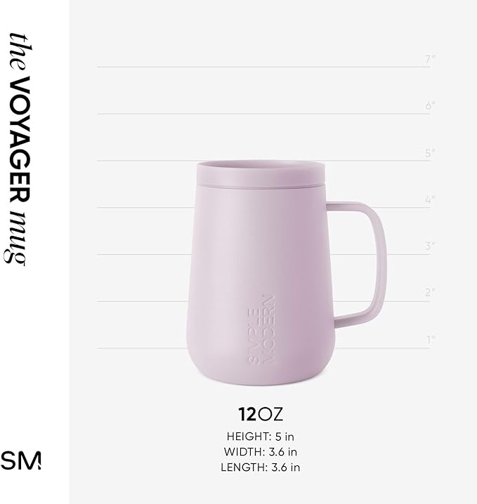 Simple Modern Voyager Signature Mug | Travel Coffee Tumbler with 360° Lid and Handle | Ceramic-Lined Insulated Stainless Steel Iced Cold Brew Cup | 12oz, Lavender Mist
