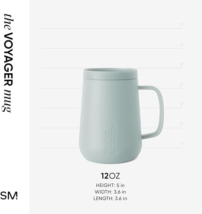 Simple Modern Voyager Signature Mug | Travel Coffee Tumbler with 360° Lid and Handle | Ceramic-Lined Insulated Stainless Steel Iced Cold Brew Cup | 12oz, Sea Glass Sage
