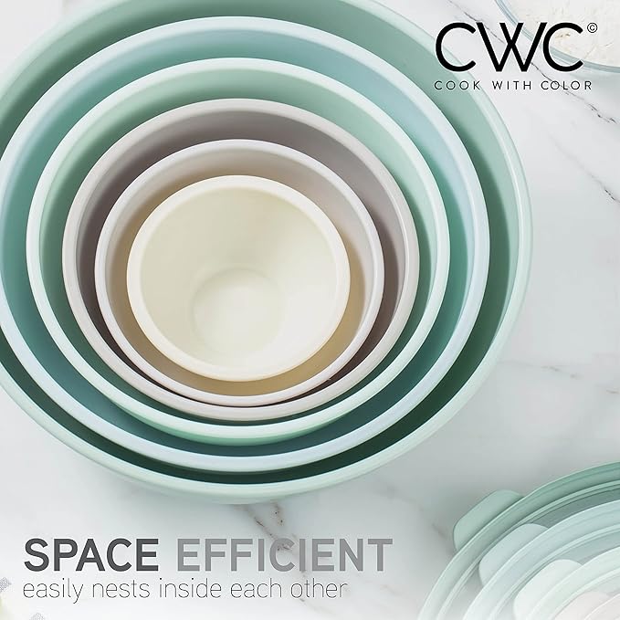 COOK WITH COLOR Nesting Mixing Bowls - 12 Piece Plastic Bowl Set with Lids, Microwave Safe (Mint Ombre)