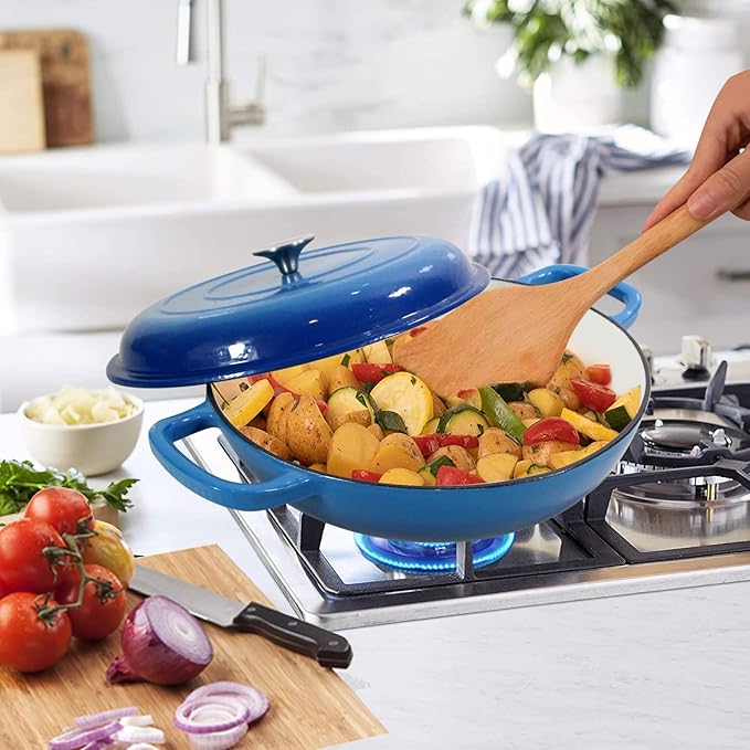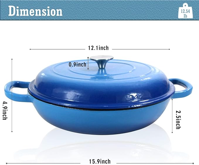 Cast Iron Dutch Oven 3.8 Quart Pot With Lid - Blue Heavy Duty Dual Handles Porcelain Enameled Skillet - Family or Friends Gifts