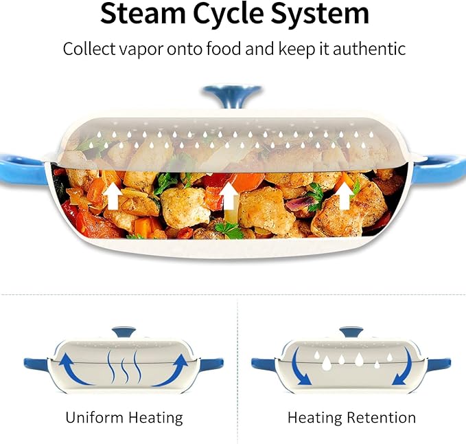 About This 🔥Self-circulating Lid:This dutch oven pot is design with circulating shower type lid, designed to catch steam as it... Read more