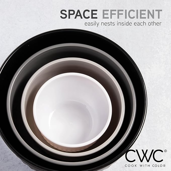 COOK WITH COLOR Prep Bowls with Lids- Wide and Deep Nesting Plastic Small Mixing Bowl Set with Lids, 8 Piece Set - Wide Bowls, Black/White