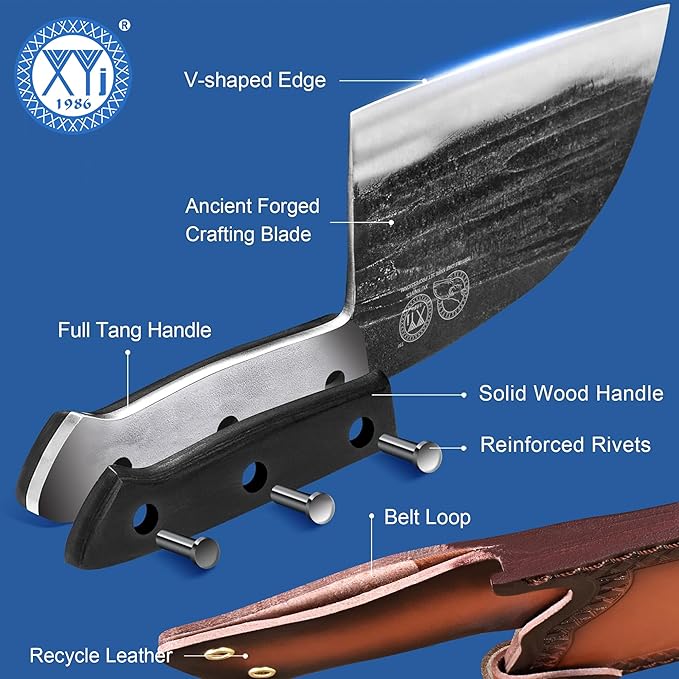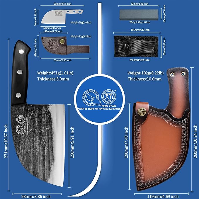 XYJ Authentic Since 1986,6 Inch Serbian Chef Knife With Sheath,Handmade Forged Ancient Outdoor Camping Kitchen Butcher Knife,Vegetable Cooking Meat Knives,Full Tang