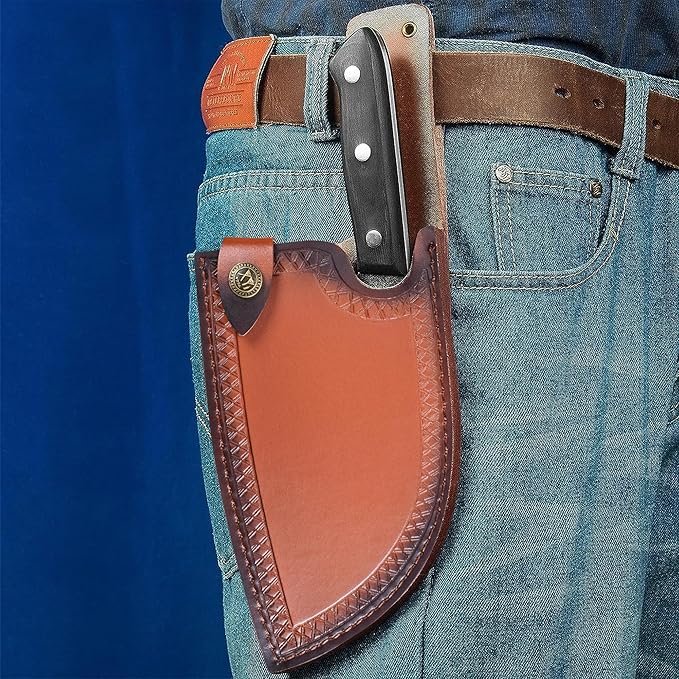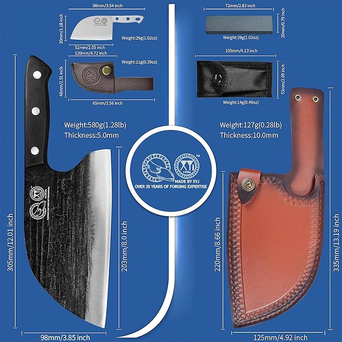 Full Tang, Serbian Chefs knife,Chef Meat Cleaver,Kitchen Knives,Set with Leather Sheath,Take Carrying,Butcher,for Camping or Outdoor (8 inch)