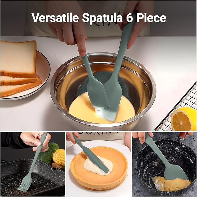 Silicone Spatula Set of 6, Rubber Spatulas Silicone Food Grade, Kitchen Utensils Set Heat Resistant Nonstick Easy to Clean Dishwasher Safe for Baking,Cooking,Mixing (Green)