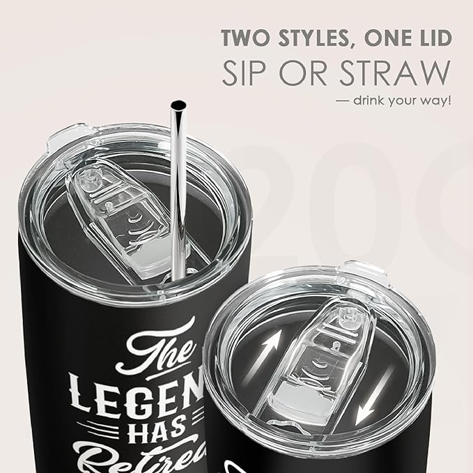 SANDJEST Retirement Gifts for Coworker, Colleagues - The Legend Has Retired Tumbler - Birthday, Christmas, Happy Retirement Gifts - 20oz Stainless Steel Insulated Coffee Travel Mug Gift for Men, Women
