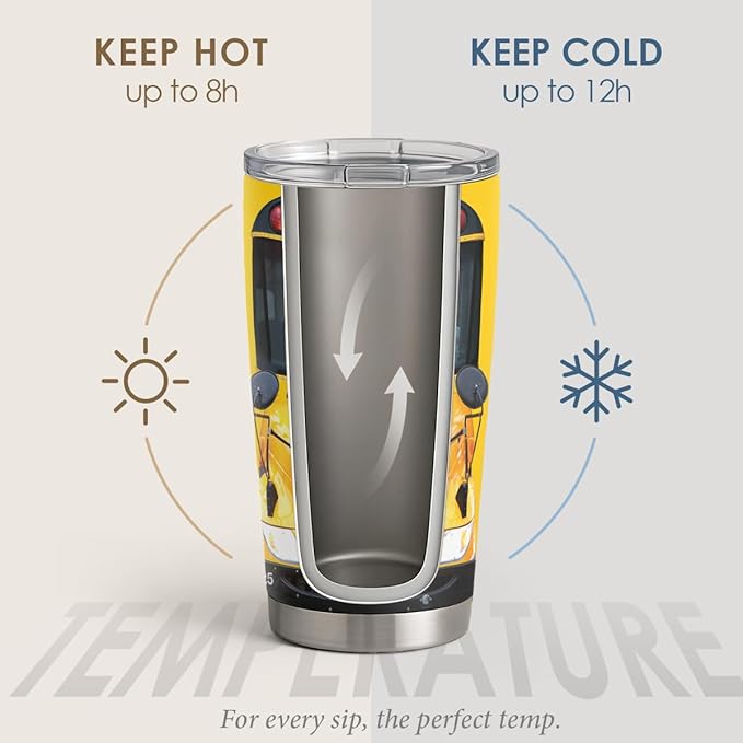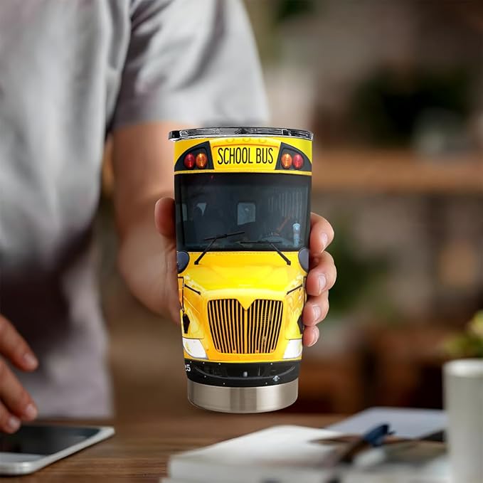 SANDJEST Bus Driver Tumbler - School Bus 20 oz Stainless Steel Double Wall Vacuum Tumblers Coffee Travel Mug - Thermal Cups Birthday, Christmas, Back To School Gifts for Men, Women, Friends, Besties