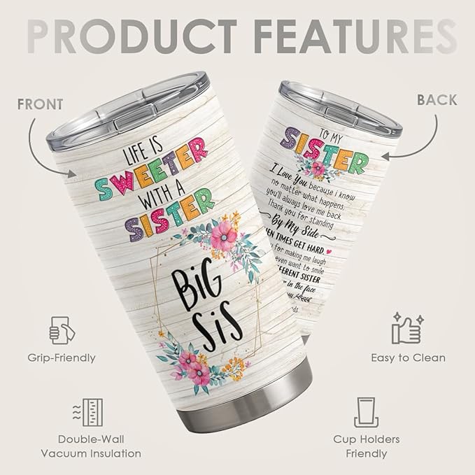 About This Great Sister Gift from Sister: Life is Sweeter with a Sister Big Sis tumblers are awesome gifts for... Read more