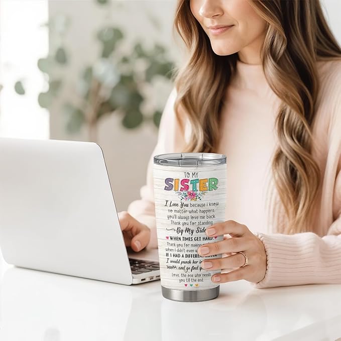 SANDJEST Sister Gifts - Sister Stainless Steel 20oz Tumbler, Insulated Travel Mug, Gifts for Birthday, Christmas, Women, Girls, Best Friends