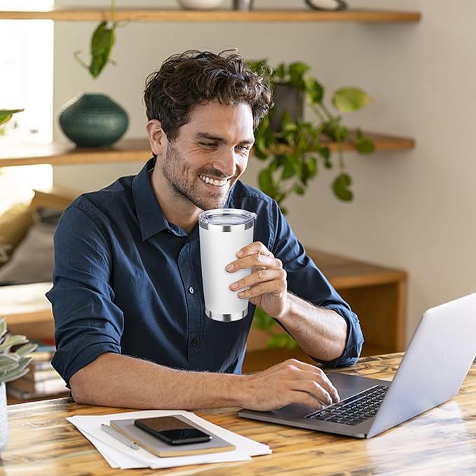 StarSpeed 20oz Tumbler Bulk with Lid, Stainless Steel Insulated Tumblers Double Wall Vacuum Insulated Travel Mug, Powder Coated Coffee Cups for Hot and Cold Drinks(White,8)