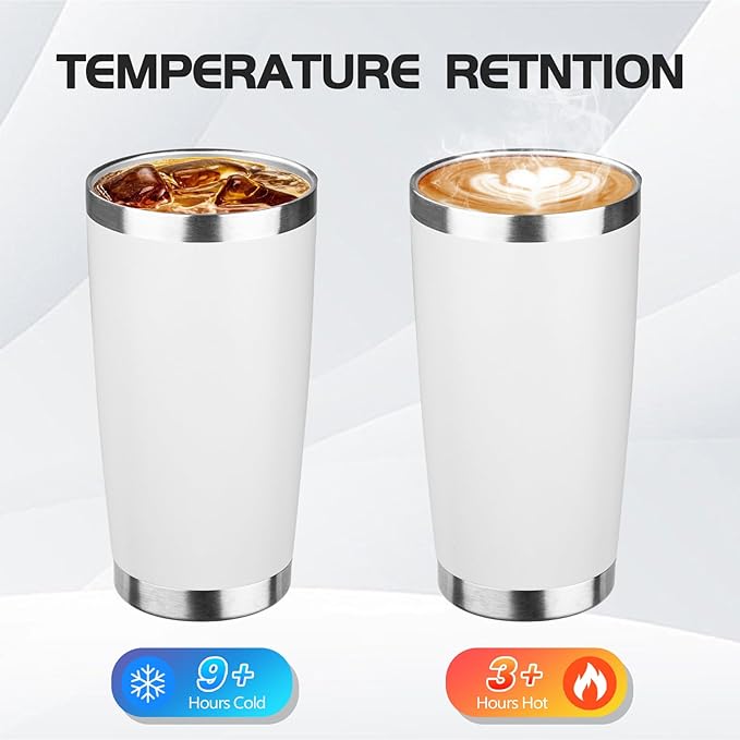 StarSpeed 20oz Tumbler Bulk with Lid, Stainless Steel Insulated Tumblers Double Wall Vacuum Insulated Travel Mug, Powder Coated Coffee Cups for Hot and Cold Drinks(White,1)