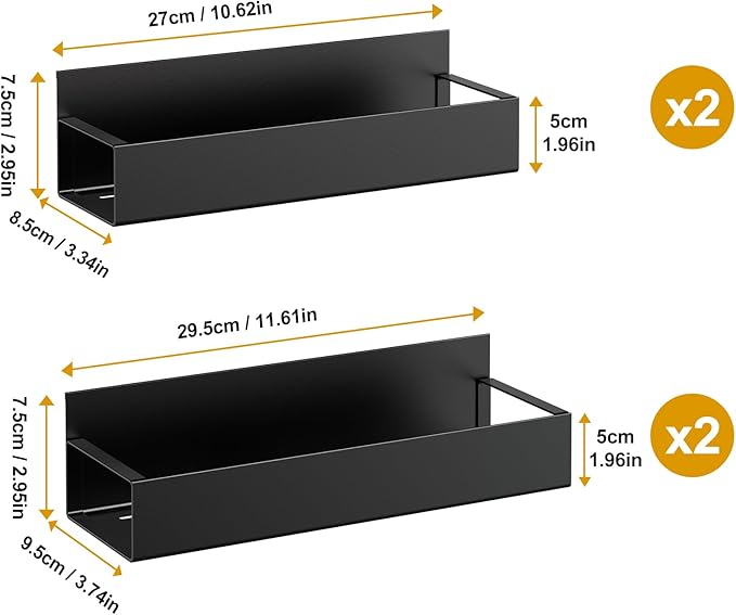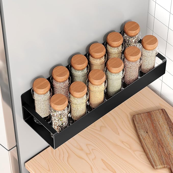 4 Pack Moveable Fridge Magnetic Spice Racks,Metal Black