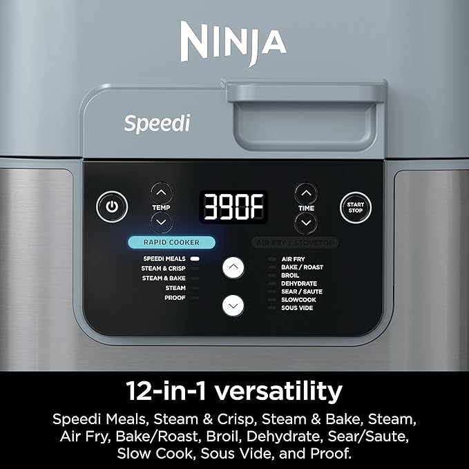 Ninja SF301 Speedi Rapid Cooker & Air Fryer, 6-Quart Capacity, 12-in-1 Functions to Steam, Bake, Roast, Sear, Sauté, Slow Cook, Sous Vide & More, 15-Minute Speedi Meals All In One Pot, Sea Salt Gray