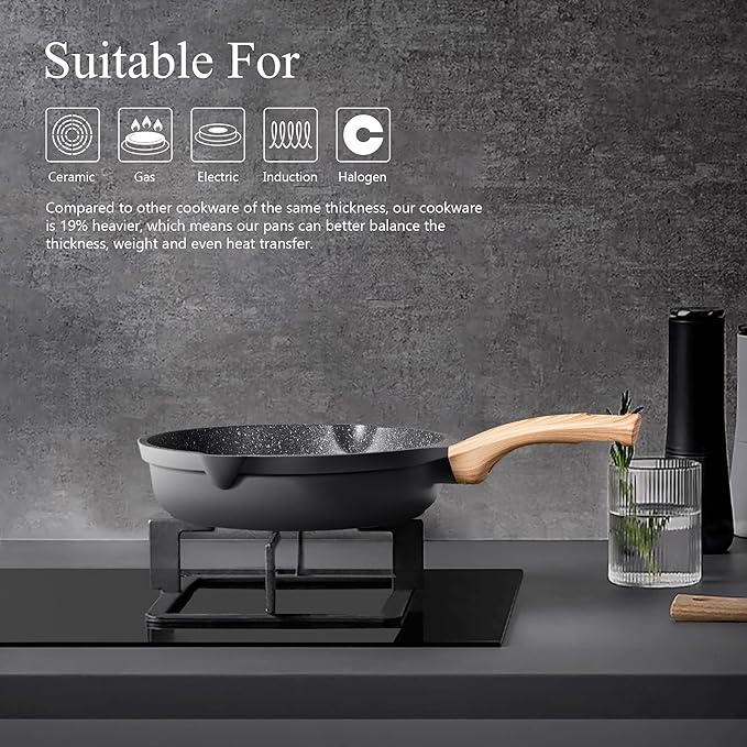 Non Stick Frying Pan Set - YIIFEEO Granite Skillet Set with 100% PFOA & PTFE Free, Induction Egg Omelette Pans for Cooking Pan Set, Cookware Set Nonstick Pots and Pans Set Gift for Women