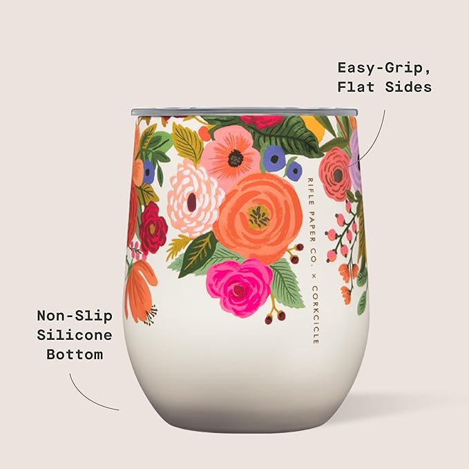 Corkcicle Stemless Insulated Wine Glass Tumbler - Keeps Beverages Cold 6 Hrs Hot 3 Hrs - Stainless Steel - Easy-Grip - Summer Drinkware Gift - Keeps Drinks Ice Cold - 12 oz - Garden Party