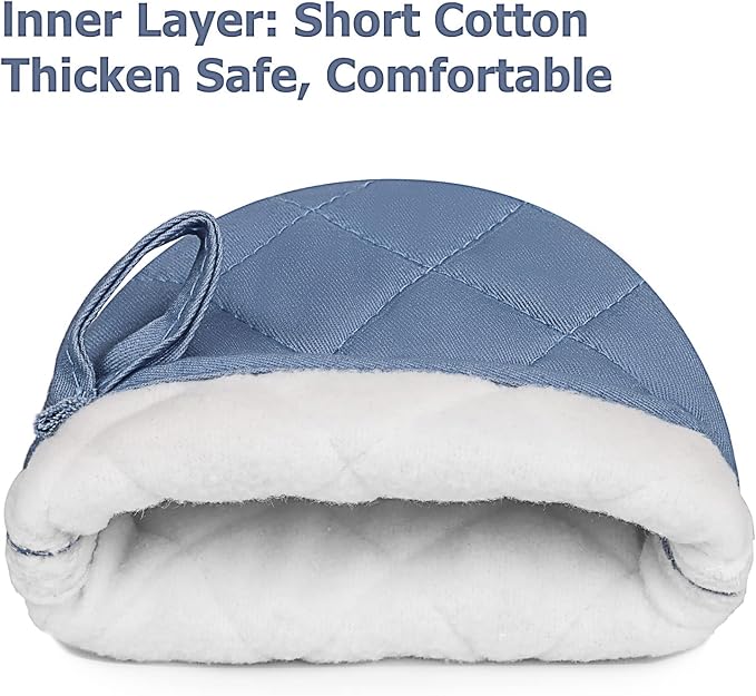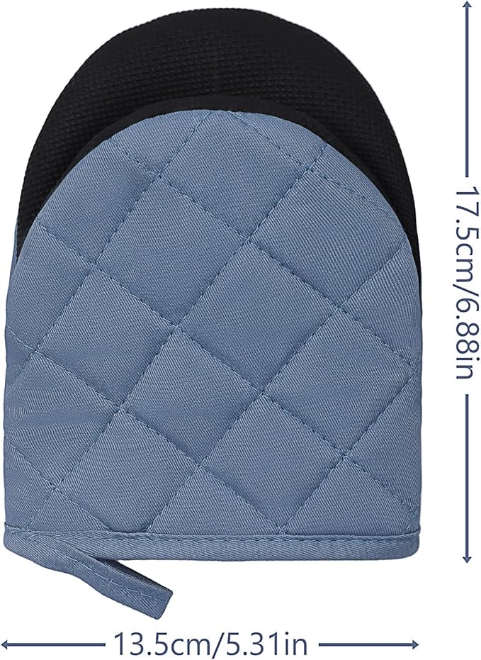 1 Pair Short Oven Mitts, Heat Resistant Silicone Kitchen Mini Oven Mitts for 500 Degrees, Non-Slip Grip Surfaces and Hanging Loop Gloves, Baking Grilling Barbecue Microwave Machine Washable (Sky Blue)