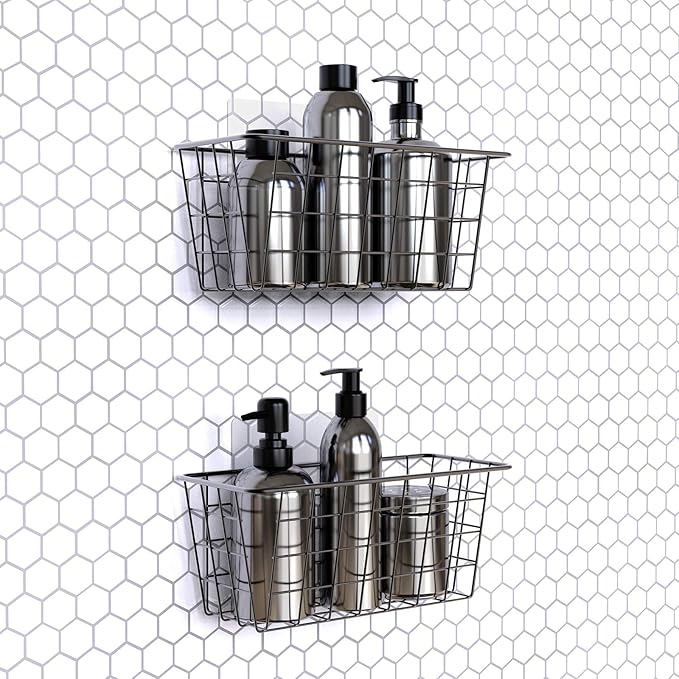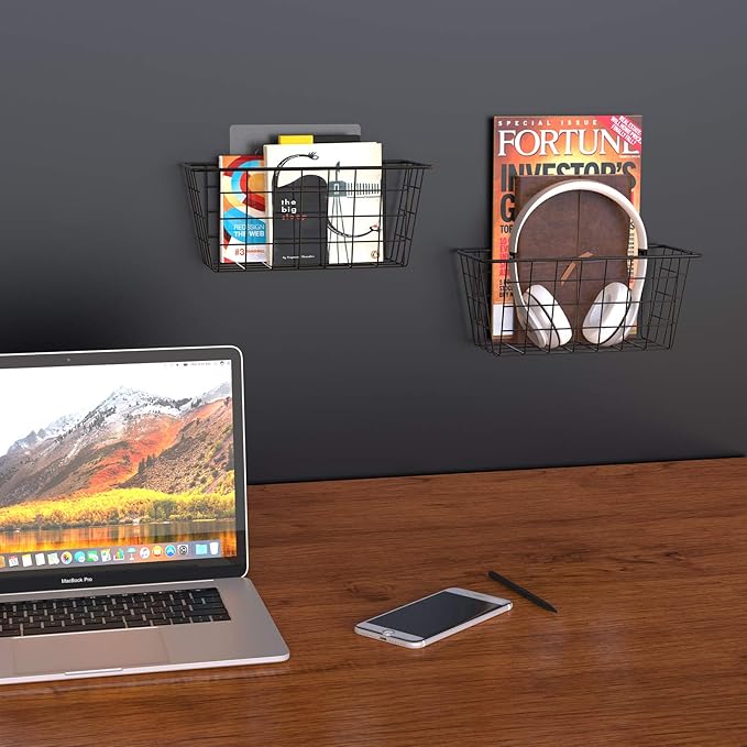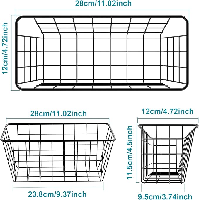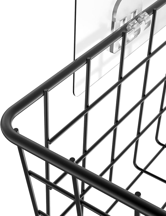 MaraFansie Over the Cabinet Door Organizer Wall Wire Baskets Hanging Kitchen Basket Shelf for Cabinet & Pantry Organization and Kitchen, Bathroom, Bedroom Storage, with Adhesive, Black, 3 Pack