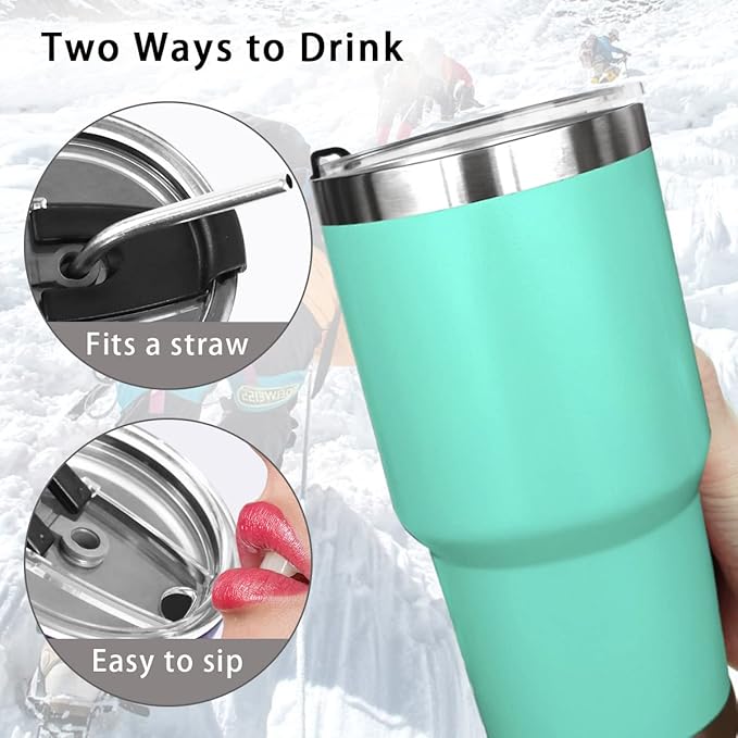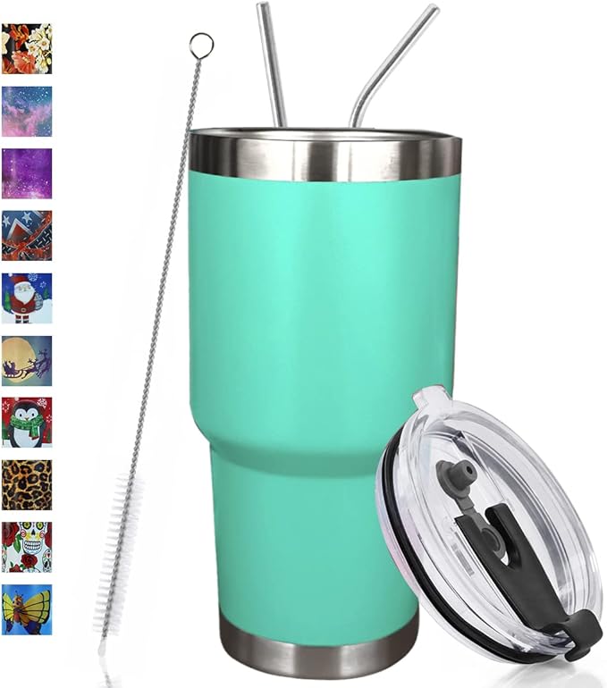 SYACOT 30oz Tumbler Double Wall Stainless Steel Vacuum Insulated Travel Mug with Splash-Proof Lid Metal Straw and Brush