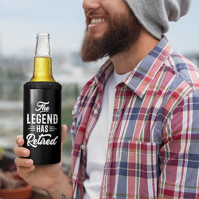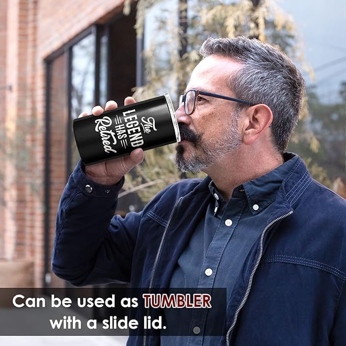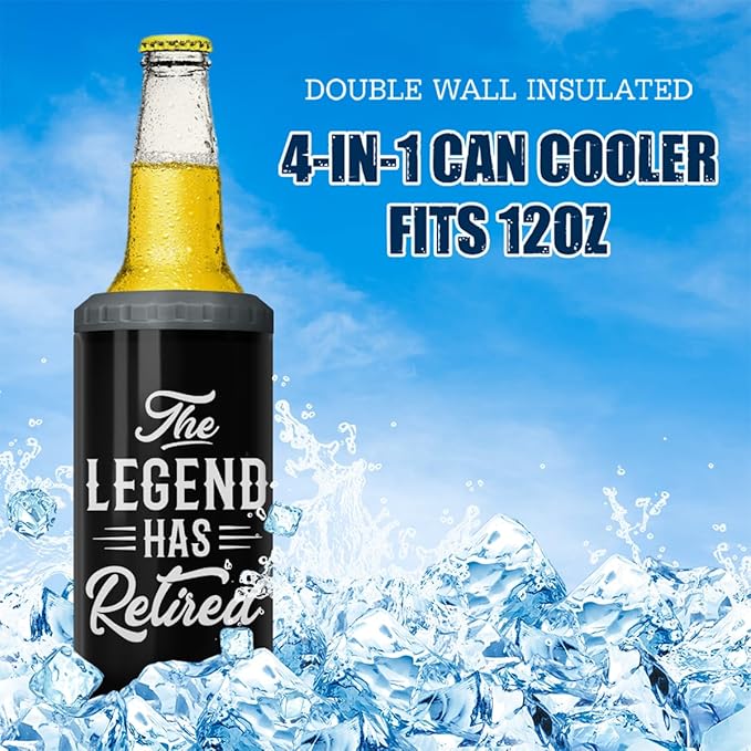 SANDJEST The Legend Has Retired 4-in-1 Design Tumbler Cup Can Cooler - 12oz Stainless Steel Insulated Cans Coozie Travel Mug Christmas, Birthday, Happy Retirement Gifts for Coworkers, Colleagues, Men