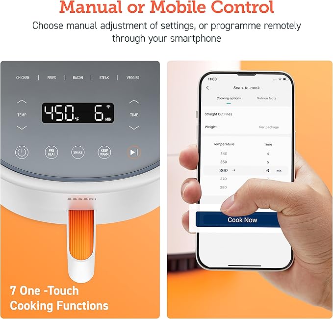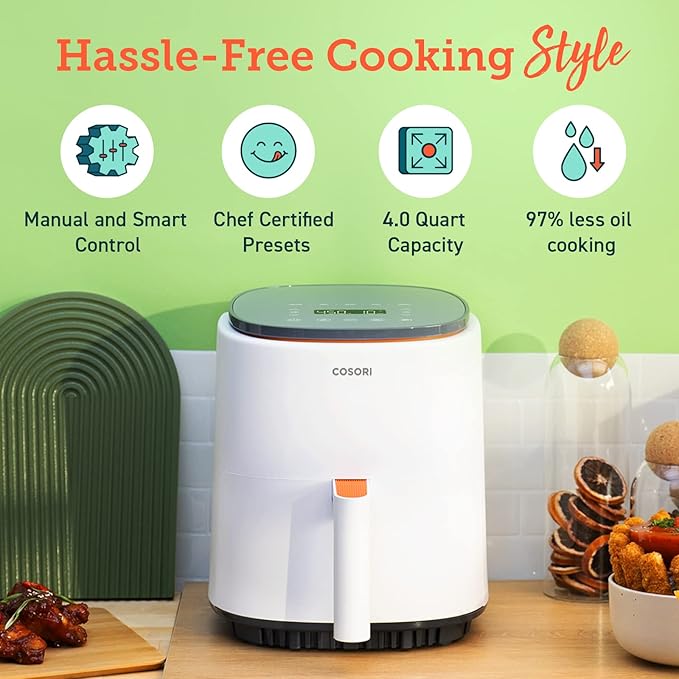 Cosori Air Fryer 4 Qt, 7 Cooking Functions Airfryer, 150+ Recipes on Free App, 97% less fat Freidora de Aire, Dishwasher-safe, Designed for 1-3 People, Lite 4.0-Quart Smart Air Fryer, White