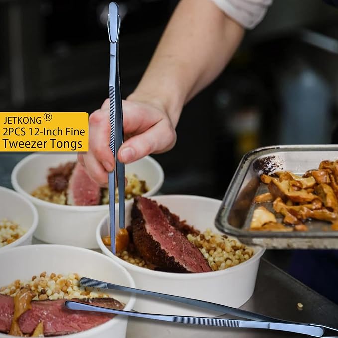 About This DURABILITY MATERIAL, EASY ON YOUR HAND - JETKONG kitchen tweezers are made of high quality food grade stainless... Read more