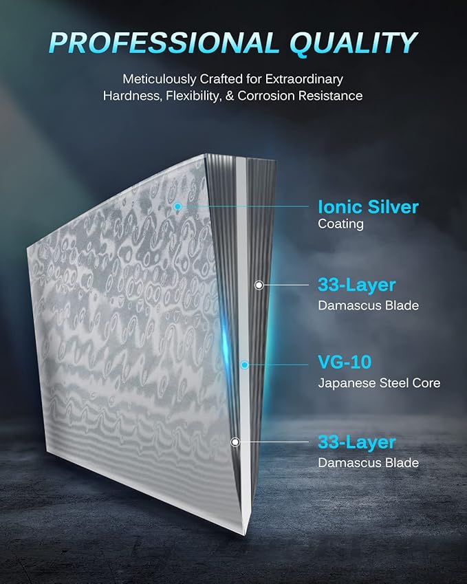 KYOKU Gin Series Steak Knife Set of 4, 4.5" Steak Knives, Japanese VG10 Damascus Stainless Steel Kitchen Knife Set with Silver Ion Blades G10 Handles Mosaic Pins, Cutlery Set w/Sheaths & Case