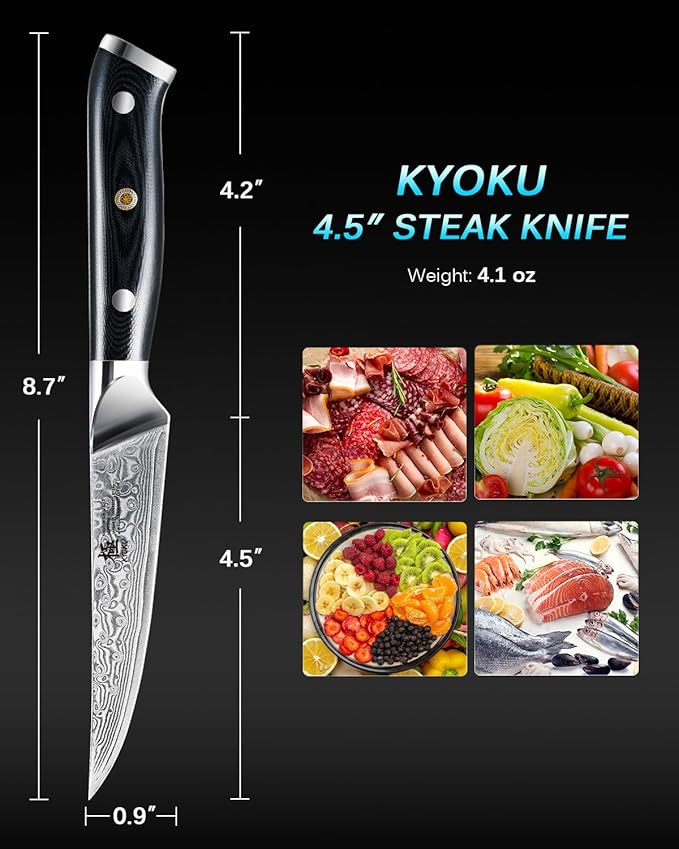 About This 4-1/2" STEAK KNIFE SET: This 4 piece steak knife set is part of Kyoku's brand new Shogun Gin... Read more