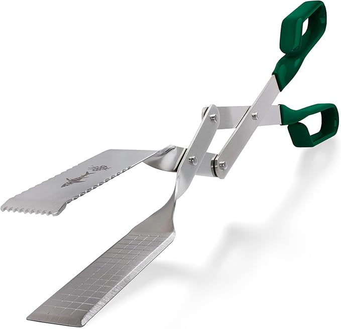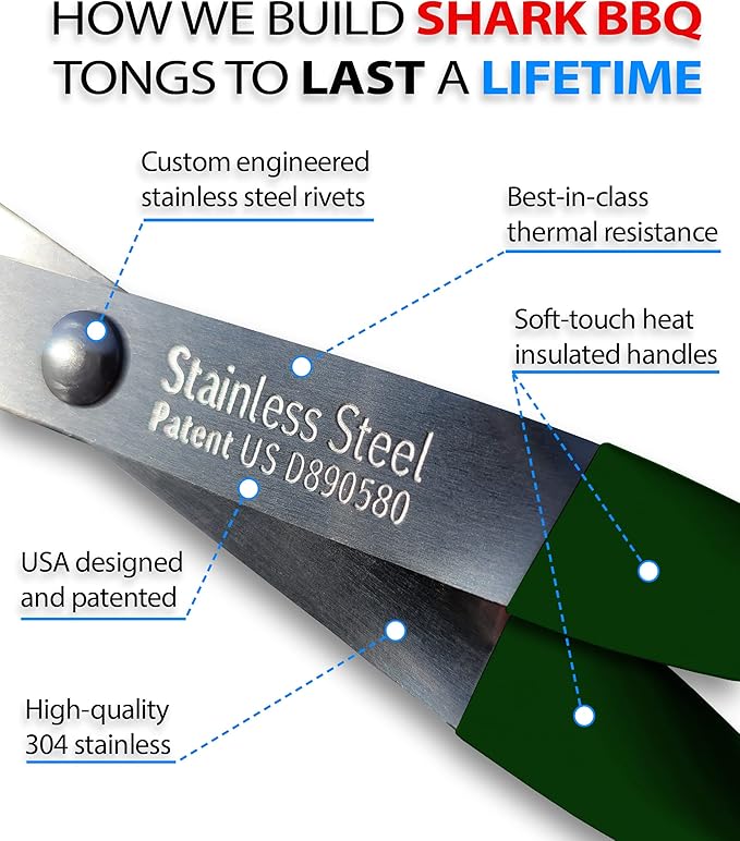 Shark BBQ Grill Tongs - 17 inch (Green). Professional steak grilling utensil. Long-reach Barbeque Tong. Ideal for steak, fish, burger, and sausage