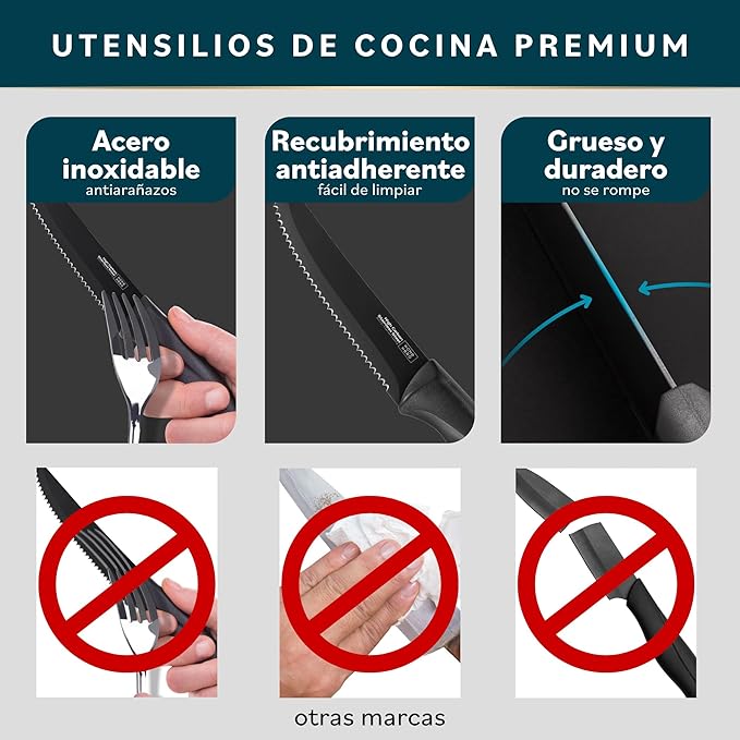 Home Hero Steak Knives Set of 12 - High-Carbon Stainless Steel Blades - Razor-Sharp Serrated Knives - Black Ergonomic Handles - 12 Pcs, Black