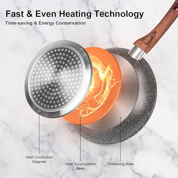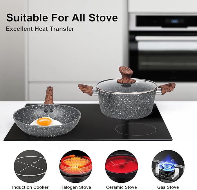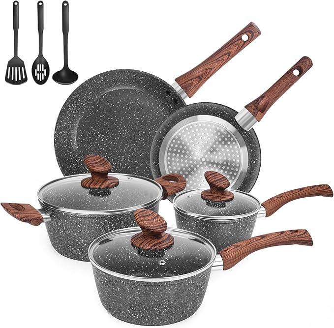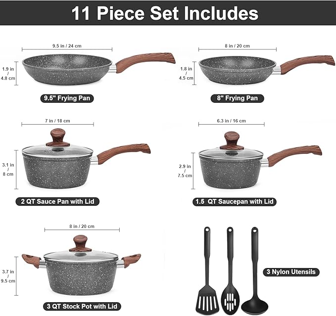 Granite Pots and Pans Set Non Stick, 11 Piece Die-Cast Induction Cookware Set, Nonstick Kitchen Cooking Set w/Frying Pans & Saucepans, PFOA Free