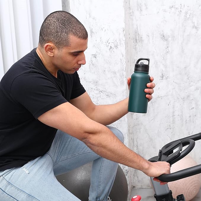 BJPKPK Insulated Water Bottles with Straw Lid, 27oz Stainless Steel Water Bottle with 3 Lids, Leak Proof BPA Free Metal Thermo, Mugs, Tumblers, Keep Cold Hot -Army Green