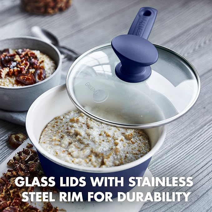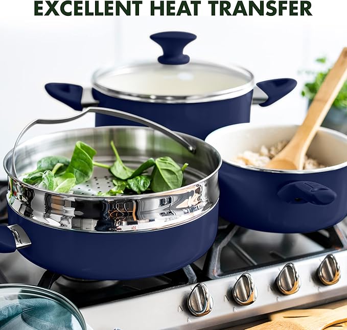 GreenPan Rio 16 Piece Cookware Set, PFOA and PFAS-Free, Healthy Ceramic Nonstick, Dishwasher Safe Easy Clean Durable Performance, Blue