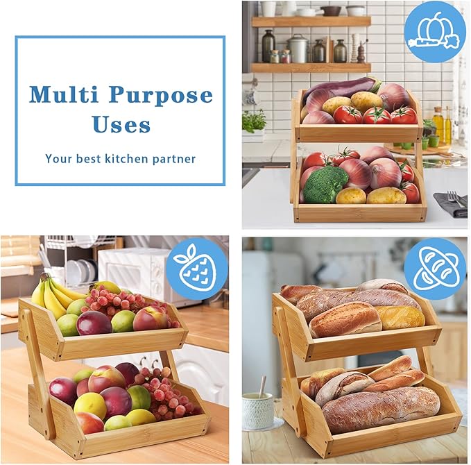 About This 【Transform Your Space】Our removable 2-tier bamboo fruit holder is designed to save space on your countertop. Place it... Read more