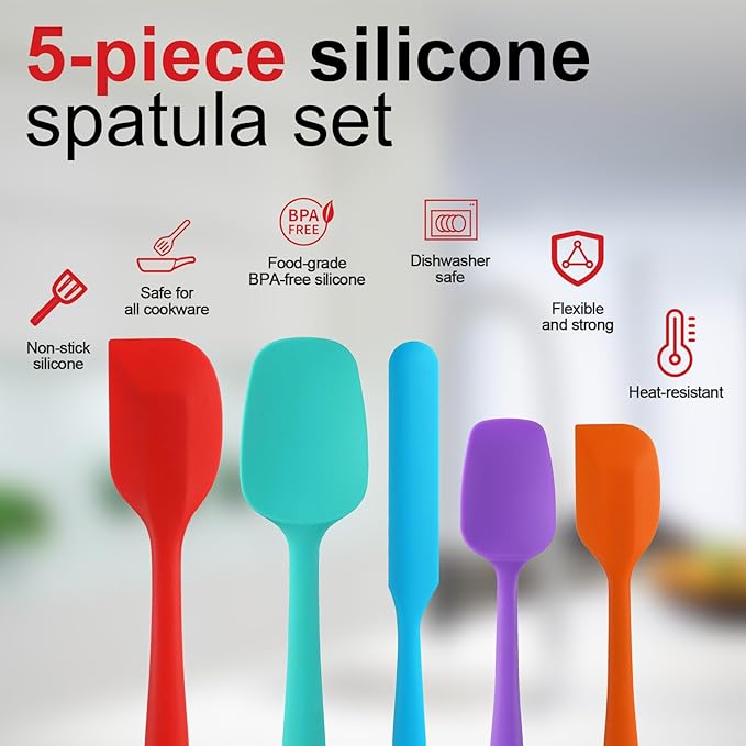 5 Piece Silicone Spatula Set - Rubber Spatula - 600°F Heat Resistant Baking Spoon & Spatulas (Multicolor-5)