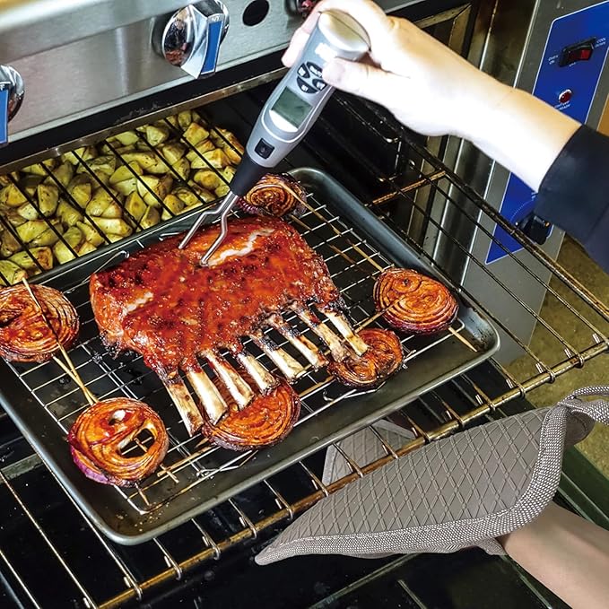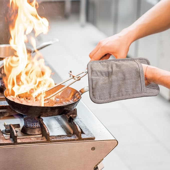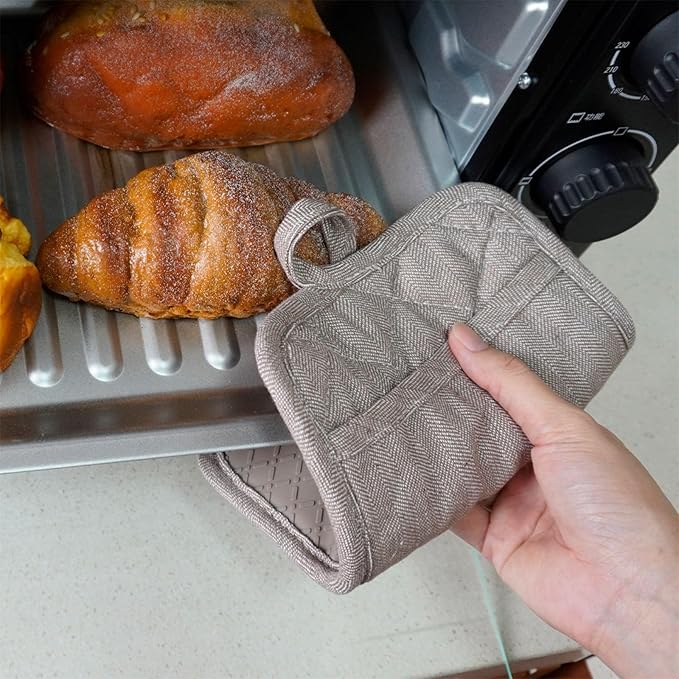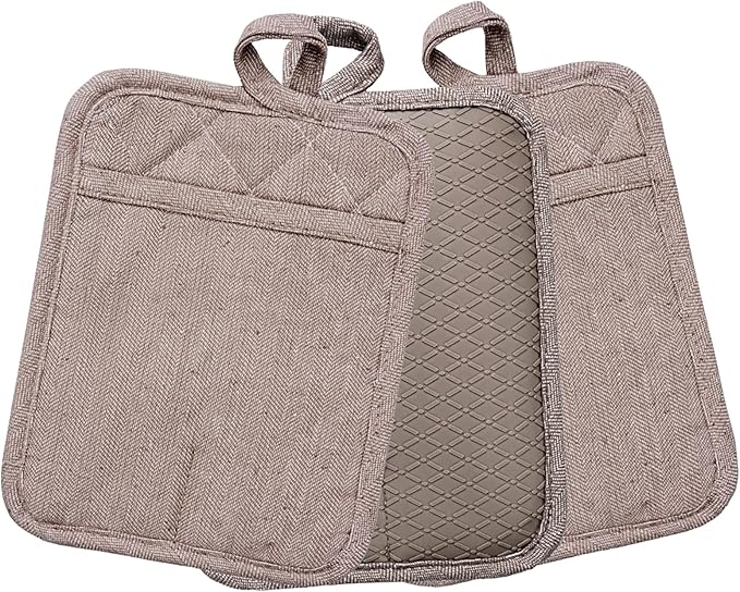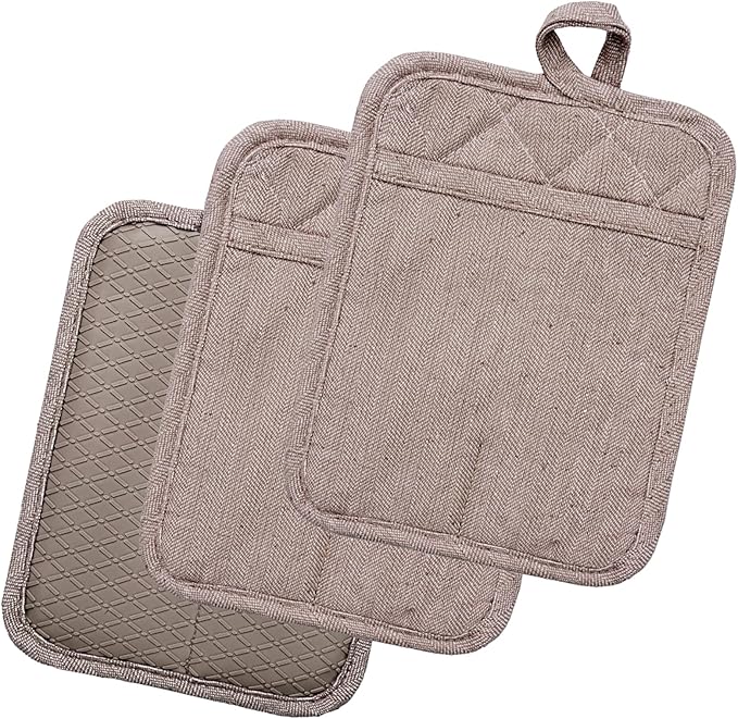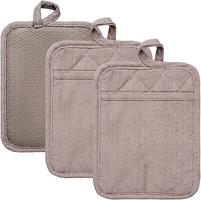 Pot Holders Yarn-Dyed Set of 3 Non Slip Silicone Kitchen Lines Heat Resistant 500℉ Kitchen Gloves BBQ Cooking Baking Cooking Barbecue Microwave Machine Washable (Khaki Pot Holders)