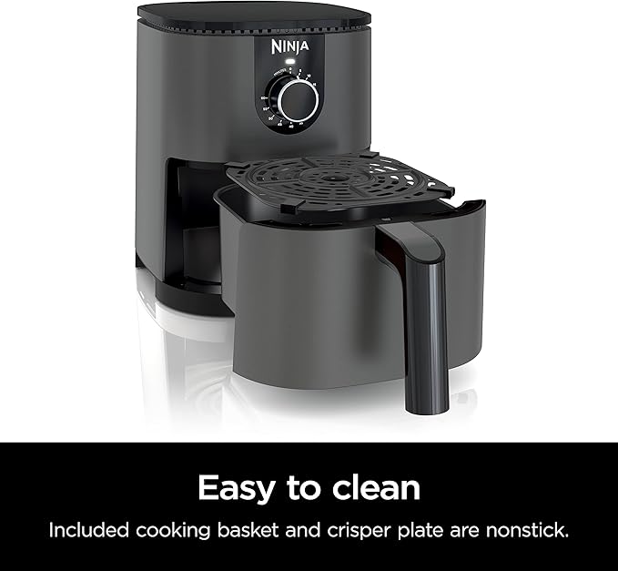 Ninja AF080 Mini Air Fryer, 2 Quarts Capacity, Compact, Nonstick, with Quick Set Timer, Grey