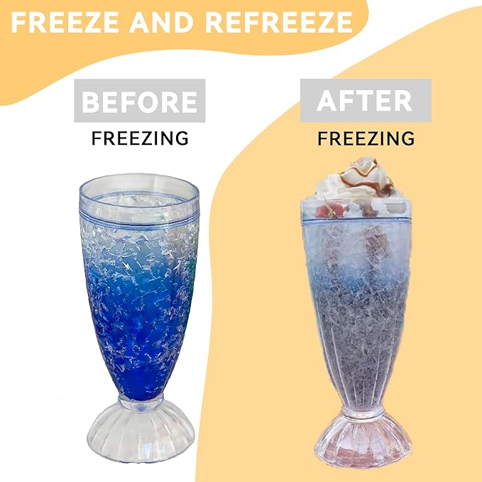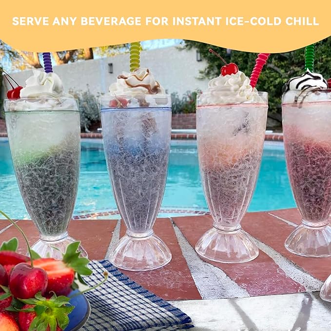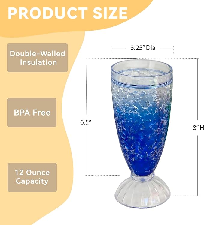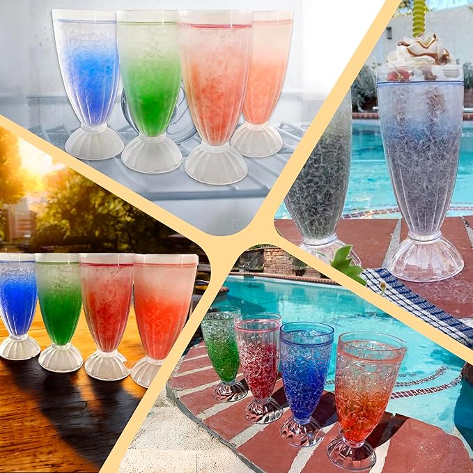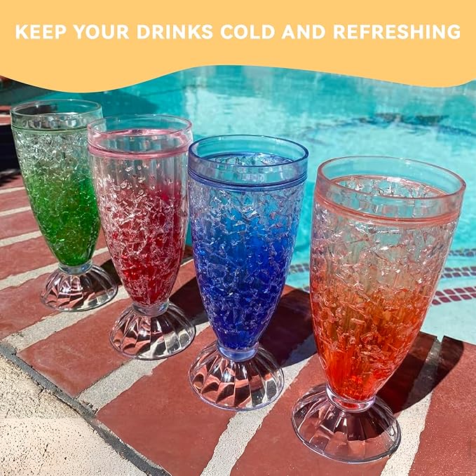 Lily's Home 12oz set of 4Insulated Double Wall Gel-Filled Acrylic Plastic Frosted Freezer Milkshake Glasses. Ideal for Root Beer Float, Smoothies and Ice Cream Soda