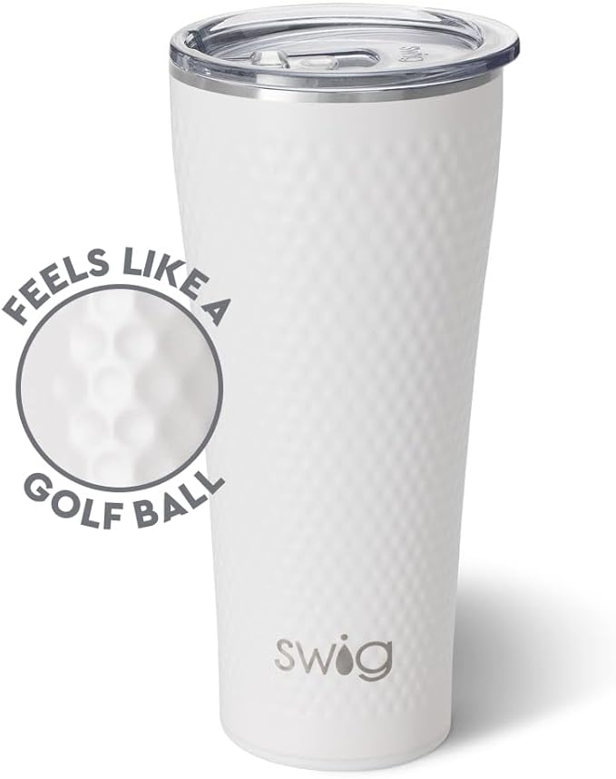 Swig Life 32oz Insulated Tumbler, Travel Coffee Tumbler with Lid, Cup Holder Friendly Travel Coffee Mug, Stainless Steel with Lid (Golf Ball)