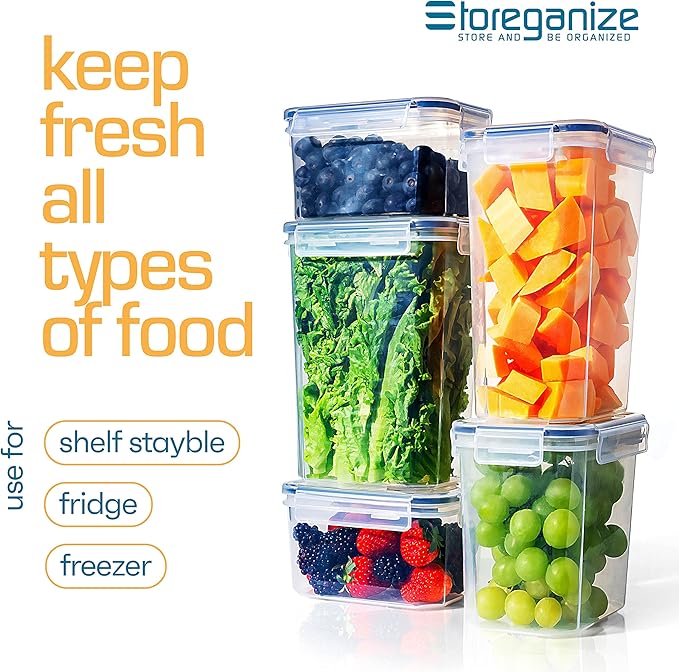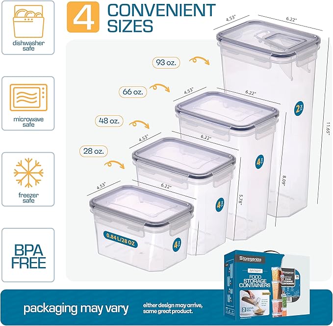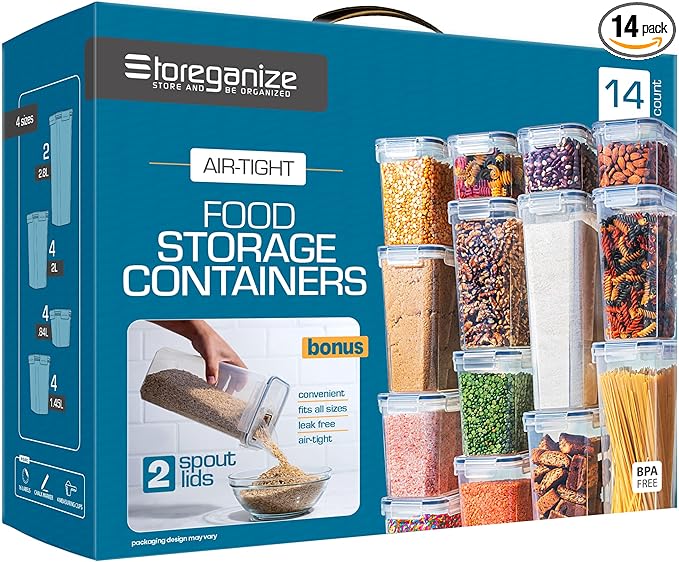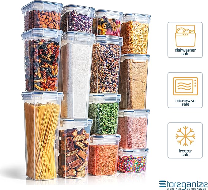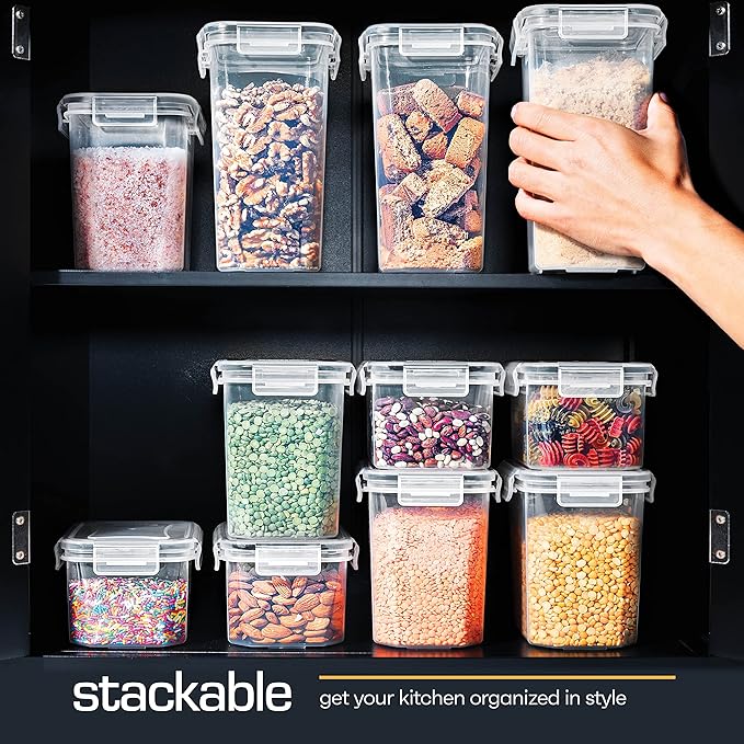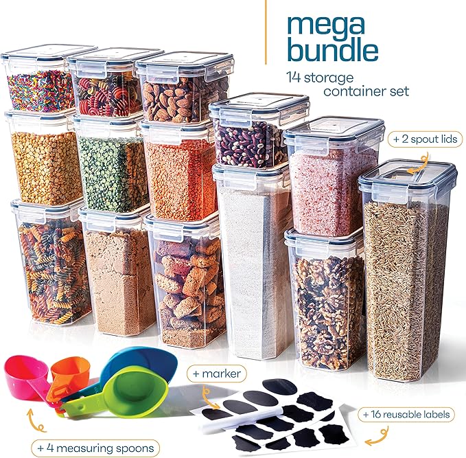 14 PCS Airtight Food Storage Containers with Lids set, BPA Free Leak-proof Kitchen and Pantry Organization Canisters for Cereal, Pasta, Dry Food, Flour Sugar, Stackable, Free Label, Marker, Scoop