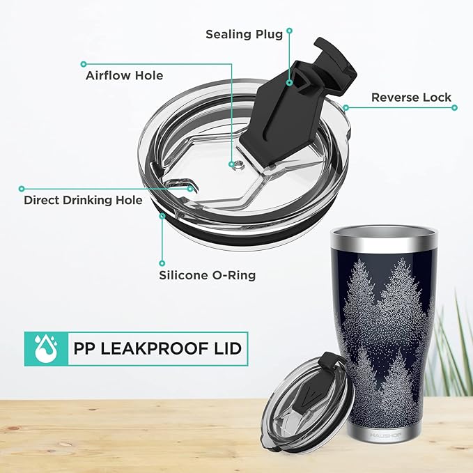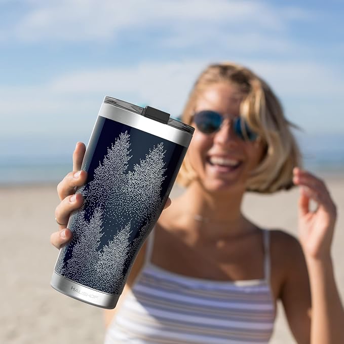 HAUSHOF 20oz Christmas Tumbler, Stainless Steel and Double Wall Insulated Travel Coffee Mug with Lid, Good Choice for Christsmas Gifts-Navy Blue with Pine Tree
