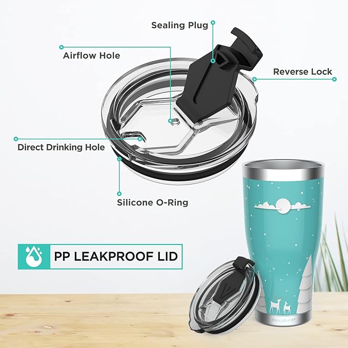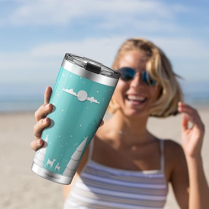 HAUSHOF 20oz Christmas Tumbler, Stainless Steel and Double Wall Insulated Travel Coffee Mug with Lid, Good Choice for Christsmas Gifts-Teal with Christmas Tree