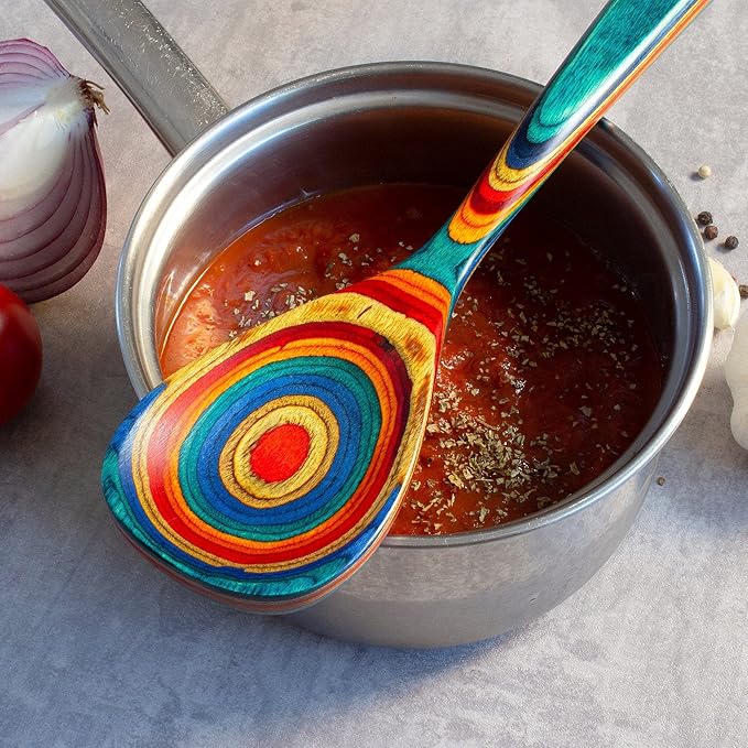 About This CRAFTED WITH COLOR: This gorgeous kitchen cooking spoon features a beautiful blend of teal, blue, gold, orange and... Read more
