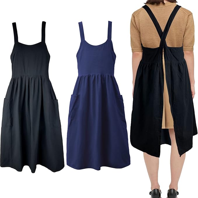 Uaussi Cotton Linen Apron Cross Back Work Apron for Women with Pockets Pinafore Dress X Cross Halter Apron for Chef Gardening