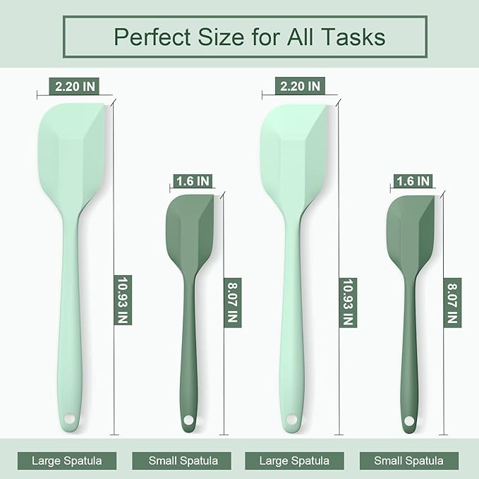 Silicone Spatula Set, Premium Spatulas Silicone Heat Resistant 2 Small & 2 Large Flexible Scraper for Nonstick Cookware, Rubber Spatula for Kitchen Mixing Baking Cooking Use, Soft Spatula - Set of 4