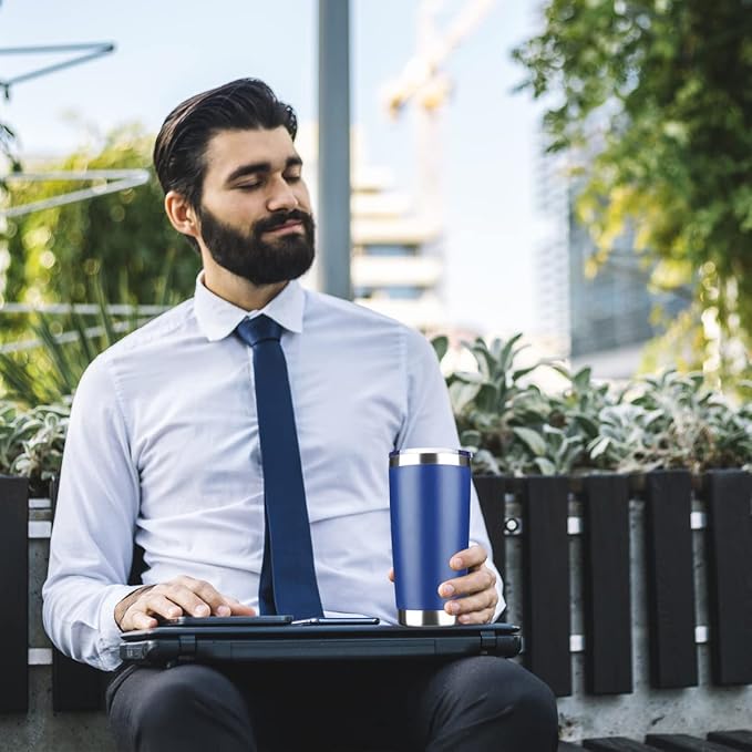20oz Tumbler Stainless Steel Vacuum Insulated Mug with Lid, Double Wall Travel Mug, Durable Powder Coated Coffee Cup, Suitable for Ice Drinks and Hot Beverage (New Blue 6 pack)