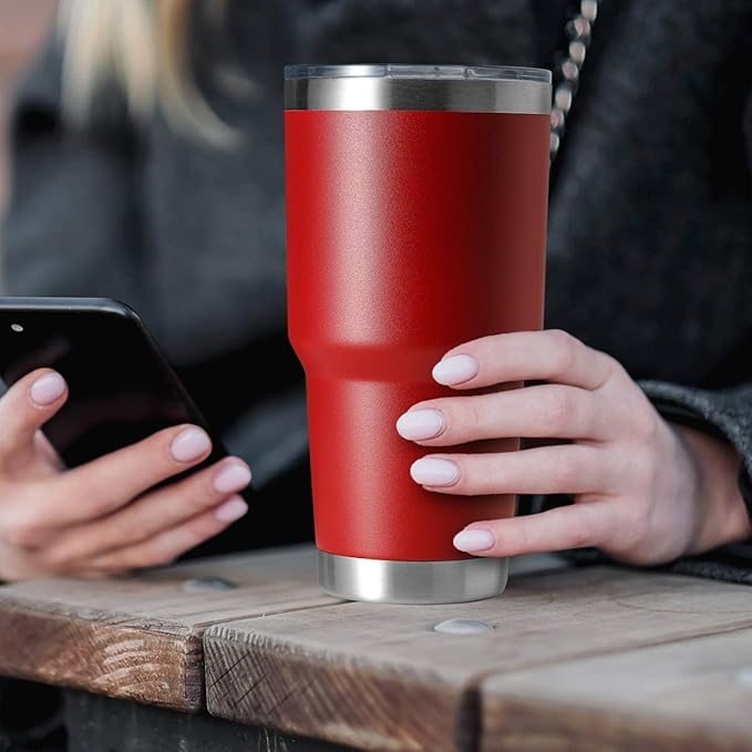 HASLE OUTFITTERS 30oz Stainless Steel Tumbler, Double Wall Vacuum Insulated Travel Mug Tumbler, Durable Insulated Coffee Mug, Gift Box Set (Red, 12)