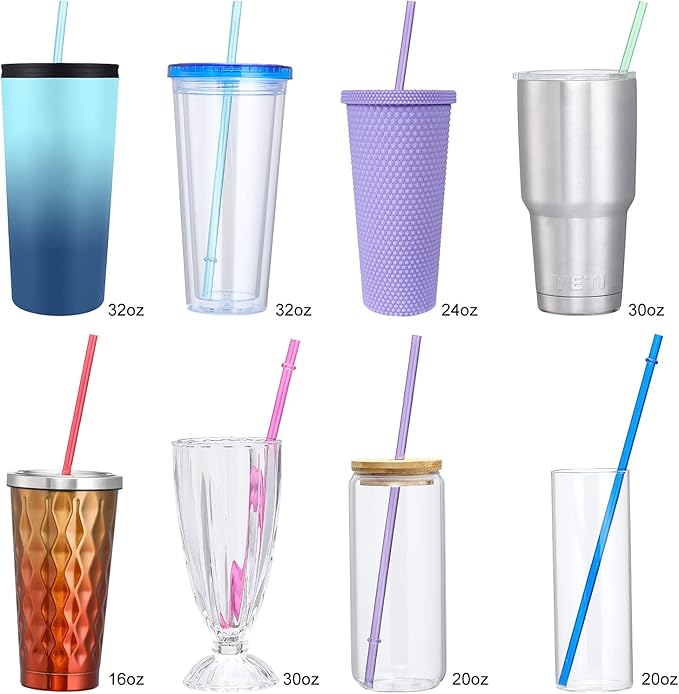 24 PCS, Reusable Straws with 4 Brushes, 10.5" Long Tritan Hard Plastic Straws, 12 Colors Translucent Replacement Drinking for 16OZ-32 OZ Tumblers, Cups, Jars, Stanley, YETI, Starbucks, BPA Free