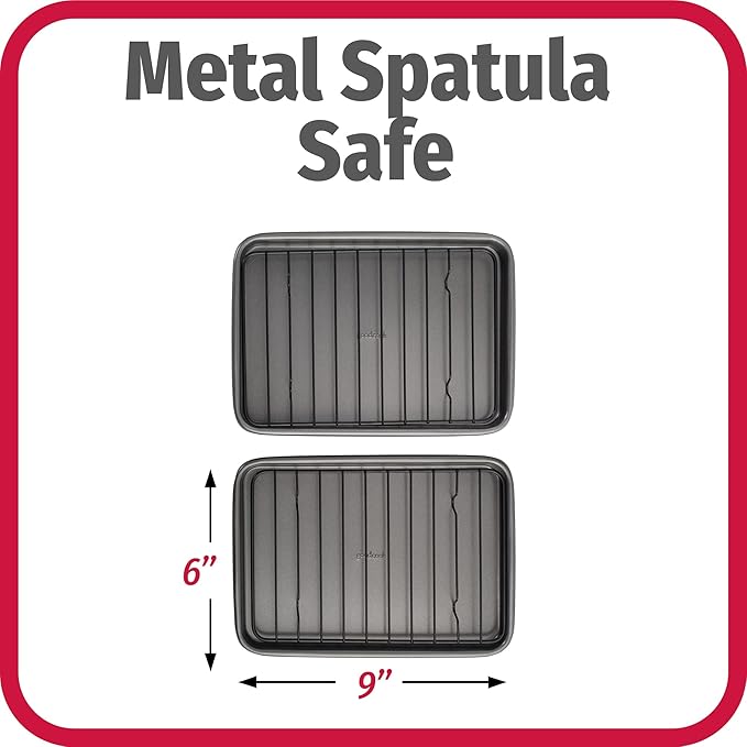 GoodCook Set of 2 Nonstick Steel 9" x 6.2" Toaster Oven Mini Baking Sheets with Racks, Gray