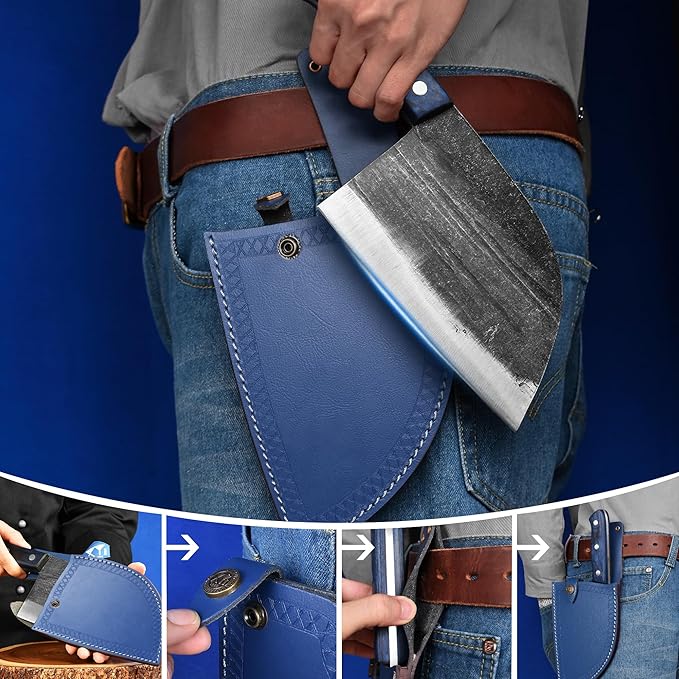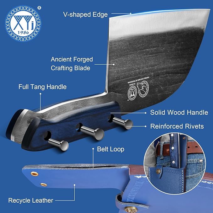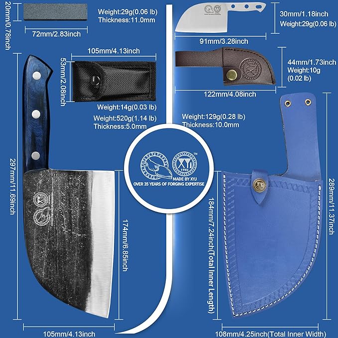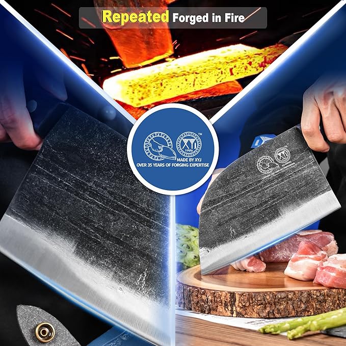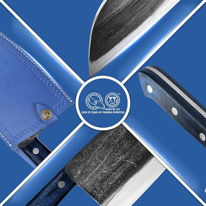 XYJ Antique Forged Butcher Knives, Serbian-Style Chef's Knife with Sheath, Heavy-Duty Meat Cleaver for Kitchen & Outdoor Use, Full Tang Construction