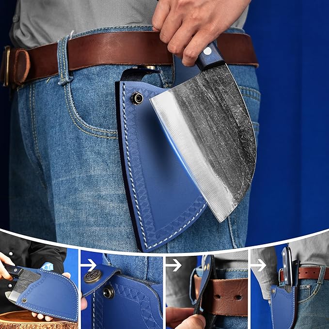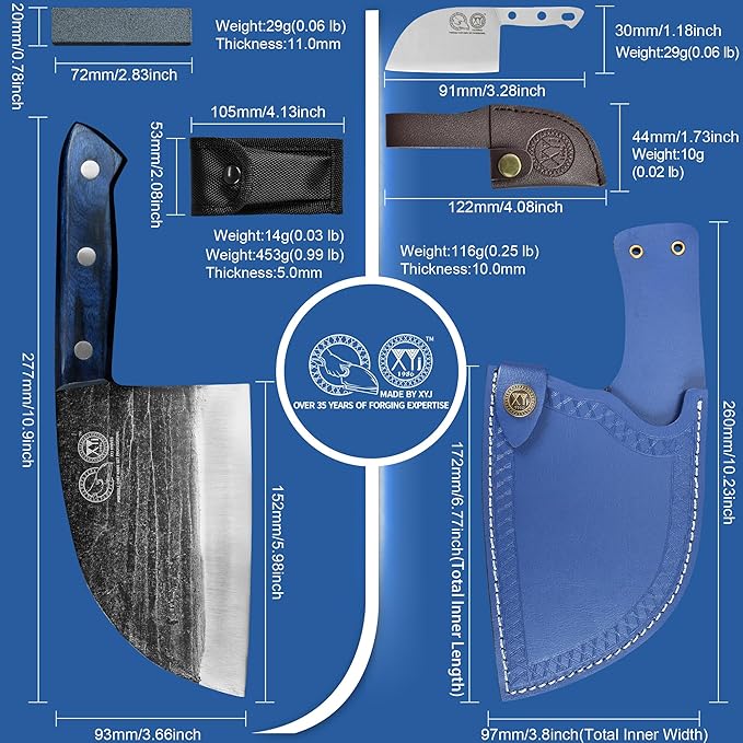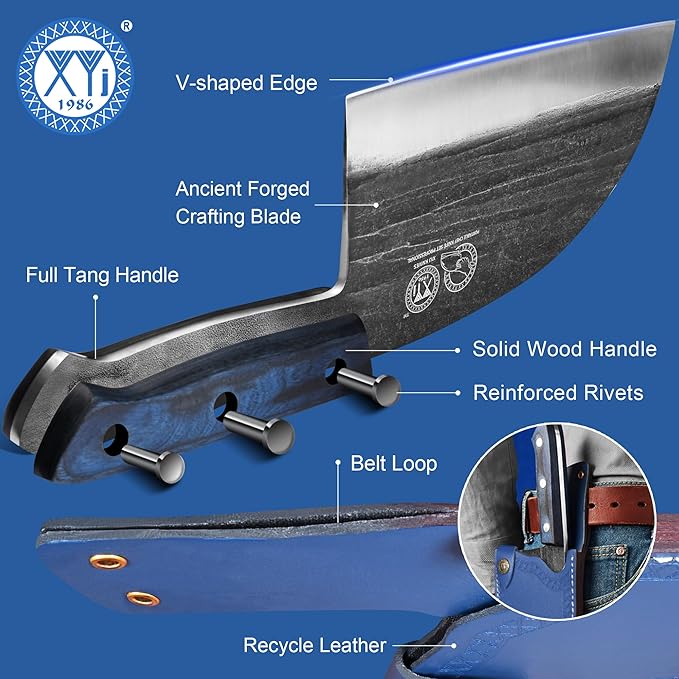 XYJ Authentic Since 1986,Ancient Forged Butcher Knives,Serbian Chef Knife With Sheath,Chinese Vegetable Meat Knives For Kitchen Camping Outdoor,Full Tang (6 inch)